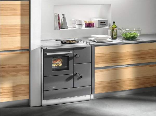 Retro v moderním hávu, to jsou sporáky HA 75.5. Sporák na dřevo a brikety má prostor na přikládání s otočným roštem a popelníkem. Vybavení trouby je pečící rošt a pečící plech. Podle toho, co vám lépe pasuje do kuchyně, si můžete zvolit levou nebo pravou variantu. Volit můžete i mezi bílým smaltem nebo antracitovou barvou. Jako příslušenství se také můžete rozhodnout pro sklokeramickou desku nebo si pořídit kryt varné desky. Označení 75.5 znamená, že šířka sporáku je 750 mm. Praktická je zásuvka na palivo ve spodní části sporáku.